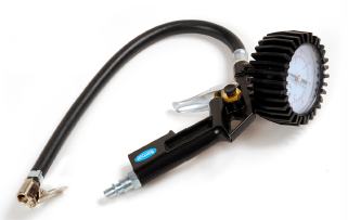 Infla, mide y descarga exceso de aire del neumático. Manómetros disponibles: 60psi (4 bar) y 180psi (12 bar). Racor tipo Michelin, dual, tipo acople 2 garras ó 3 garras.