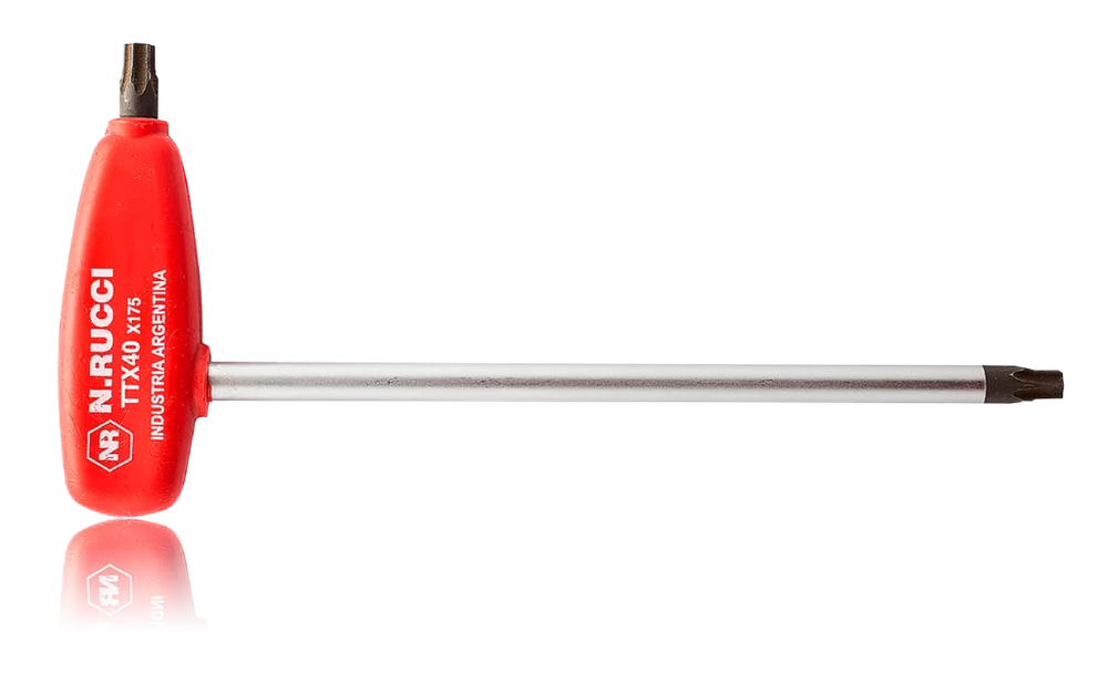 Mango anatómico de polipropileno reforzado y vástago de acero de alta calidad con punta torx.