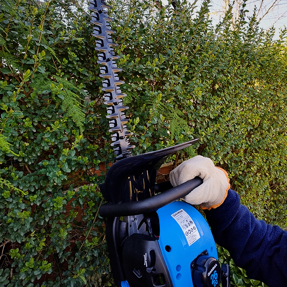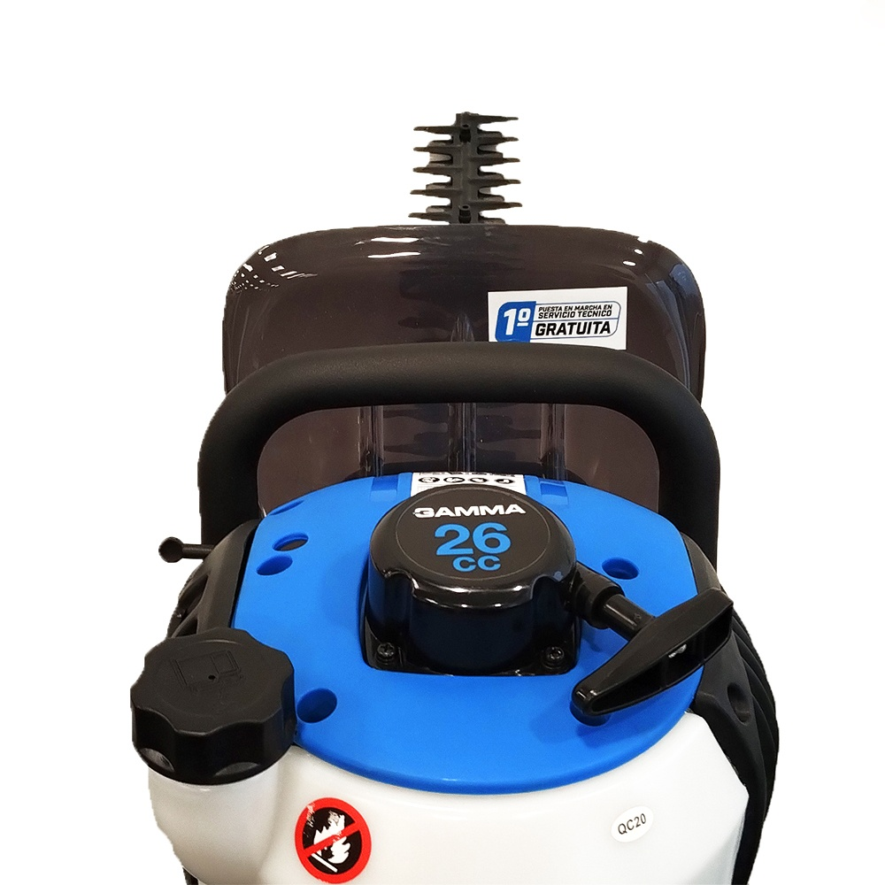 El cortacerco Gamma G1862AR (Modelo CCG-862) cuenta con un motor de 2 tiempos de 25,4 cc y una potencia máxima de 0,7 kW, ideal para el bordeado de pequeños arbustos. Con una cuchilla de 16” (550 mm) y una capacidad de corte de 28 mm, ofrece una velocidad máxima de 11000 rpm. Ligero (6 kg) y con un tanque de 610 ml, es perfecto para trabajos prolongados. Diseñado exclusivamente para setos, no es apto para podar árboles o cortar césped.