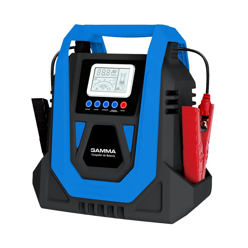 Cargador inteligente de baterías de plomo-ácido de 12V y 24V con opción BOOST, potencia máxima de 700W, y múltiples sistemas de seguridad. Ideal para baterías de autos, motocicletas y vehículos pesados.