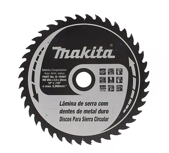 Disco Sierra para Madera 40 Dientes 255x30mm B-19467