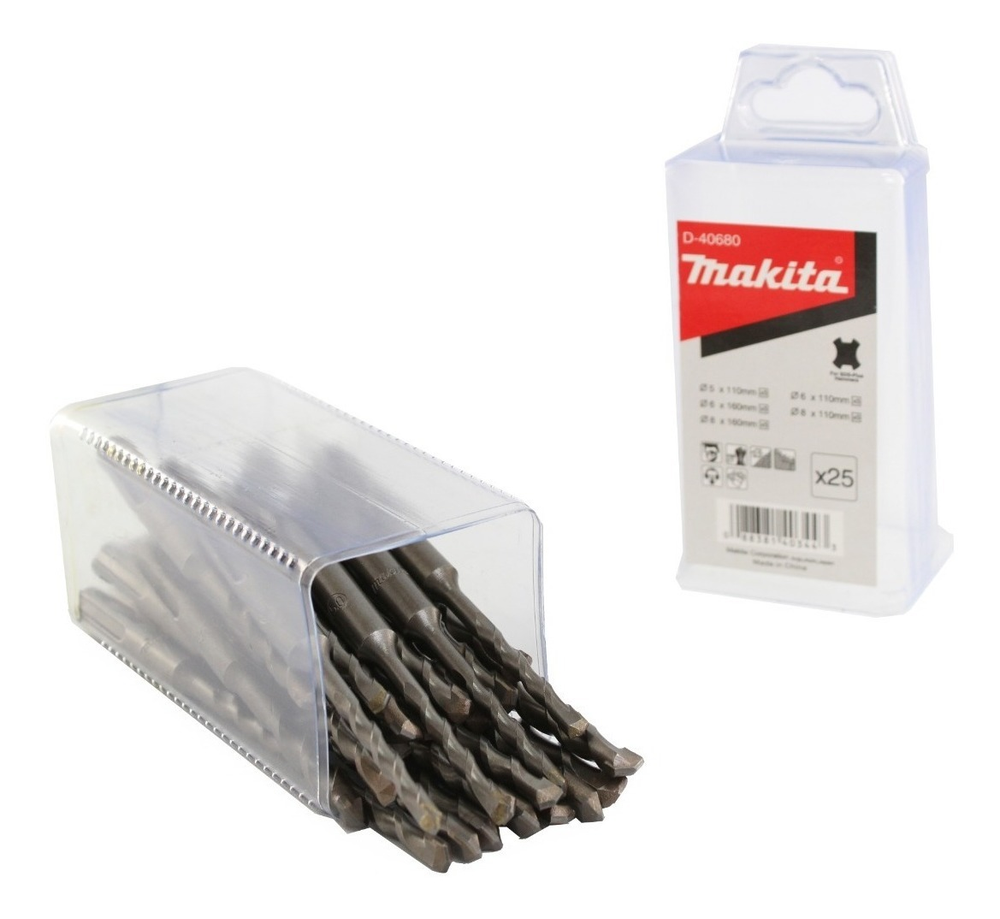 INCLUYE: - 5 mechas SDS PLUS 5 x 110 mm. - 5 mechas SDS PLUS 6 x 110mm. - 5 mechas SDS PLUS 8 x 110mm. - 5 mechas SDS PLUS 6 x 160mm. - 5 mechas SDS PLUS 8 x 160mm. Peso aproximado: 3 Kg