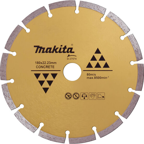 Los discos diamantados Makita fueron desarrollados para para cortar una amplia variedad de materiales, de dureza considerable, con gran precisión y velocidad, montados en cortadoras (de concreto) especiales y amoladoras. Según sus características generales, los discos diamantados pueden clasificarse por tipo de BORDE (continuo, segmentado o turbo), DIAMETRO (la medida del diámetro es inversamente proporcional a la velocidad máxima de utilidad en RPM, por tanto, a diámetros menores corresponde una mayor velocidad de giro y viceversa) y CORTE (húmedo o seco).