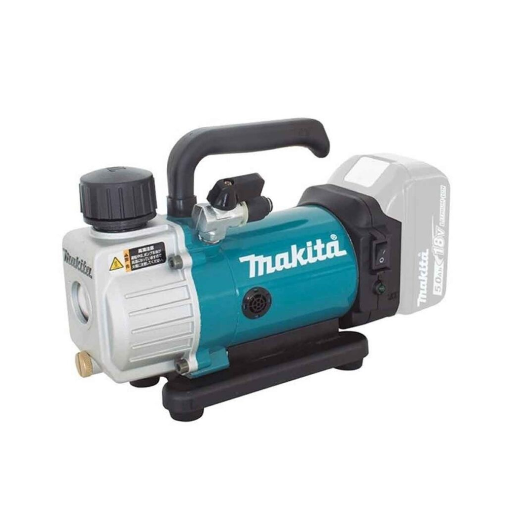 La bomba de vacío inalámbrica Makita DVP180Z de 18V LXT Ion Litio elimina todo el aire de la tubería de refrigerante para crear un ambiente de vacío antes de que la tubería se cargue con gas refrigerante. El tipo de compresión es rotativo de aceite (tipo paleta), etapa única. Gracias a su cuerpo compacto y ligero resulta fácil de transportar.