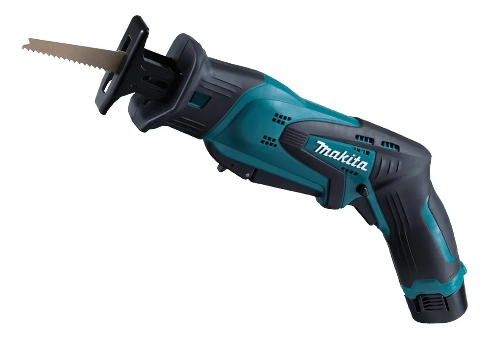 La sierra a batería JR102DWE de Makita es una herramienta ultraligera considerada una de las más rápidas del mercado. Una herramienta duradera con una gran potencia de corte para materiales resistentes y un mecanismo de compensación único para reducir las vibraciones de la herramienta. Contiene velocidad variable, freno instantáneo, montaje en T e iluminación de trabajo.