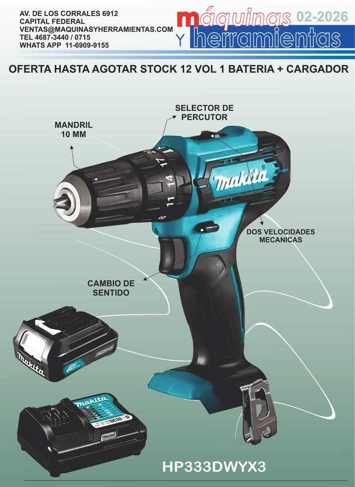 El Taladro Percutor Inalámbrico 12Vmax CXT 10 mm tiene un diseño compacto y ergonómico con solo 193 mm de largo.