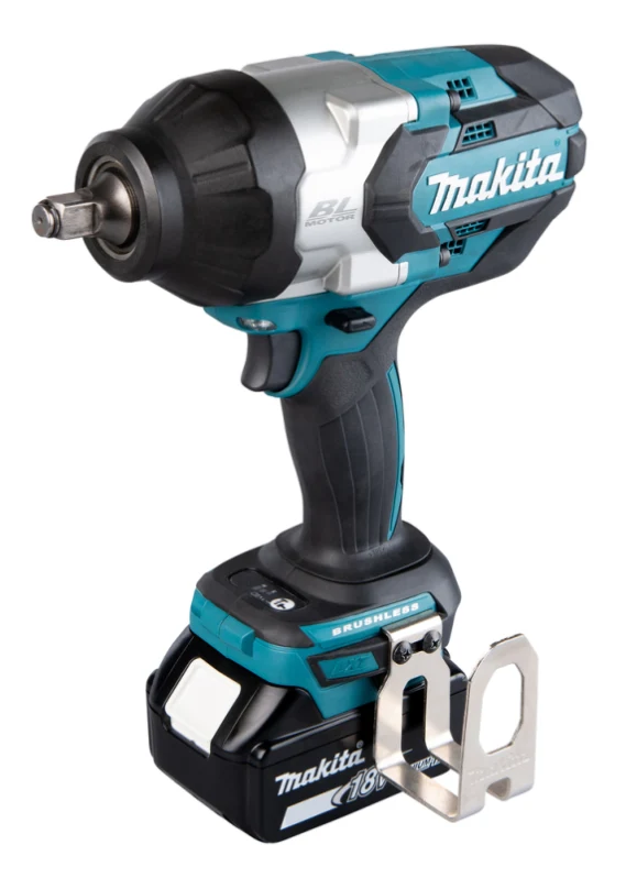 La llave de impacto inalámbrica Makita DTW1002Z de 18V LXT posee un motor BL que entrega 1.000 N · m (740 ft.lbs.) torque máximo. Es la llave de impacto de 1/2 más poderosa de la gama con un diseño compacto y liviano gracias al motor BL. LLeva un sistema de impacto eficiente (máximo 2200 IPM) con menos vibración e interruptor de cambio F / R tipo botón pulsador fácil de operar. La selección electrónica de potencia de impacto de 3 etapas reduce el apriete por fallas. Además cuenta con luz de trabajo LED doble con funciones de precalentamiento y resplandor. Es una herramienta muy cómoda de utilizar ya que tiene un mango ergonómicoque se adapta perfectamente a la mano del operario. Es extremadamente segura gracias a su freno eléctrico que detiene la rotación de forma suave pero rápida, lo que permite al usuario reanudar rápidamente la operación y control de velocidad variable por gatillo. No incluye batería ni cargador.