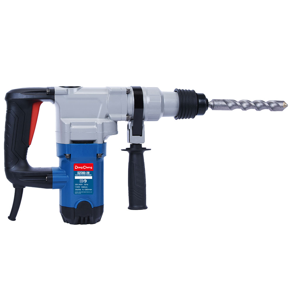 El modelo DZC03-28 es un martillo rotativo diseñado para realizar perforaciones y trabajos de demolición en materiales como concreto, mampostería y metal. Equipado con un motor potente y características ergonómicas, es ideal para profesionales de la construcción.